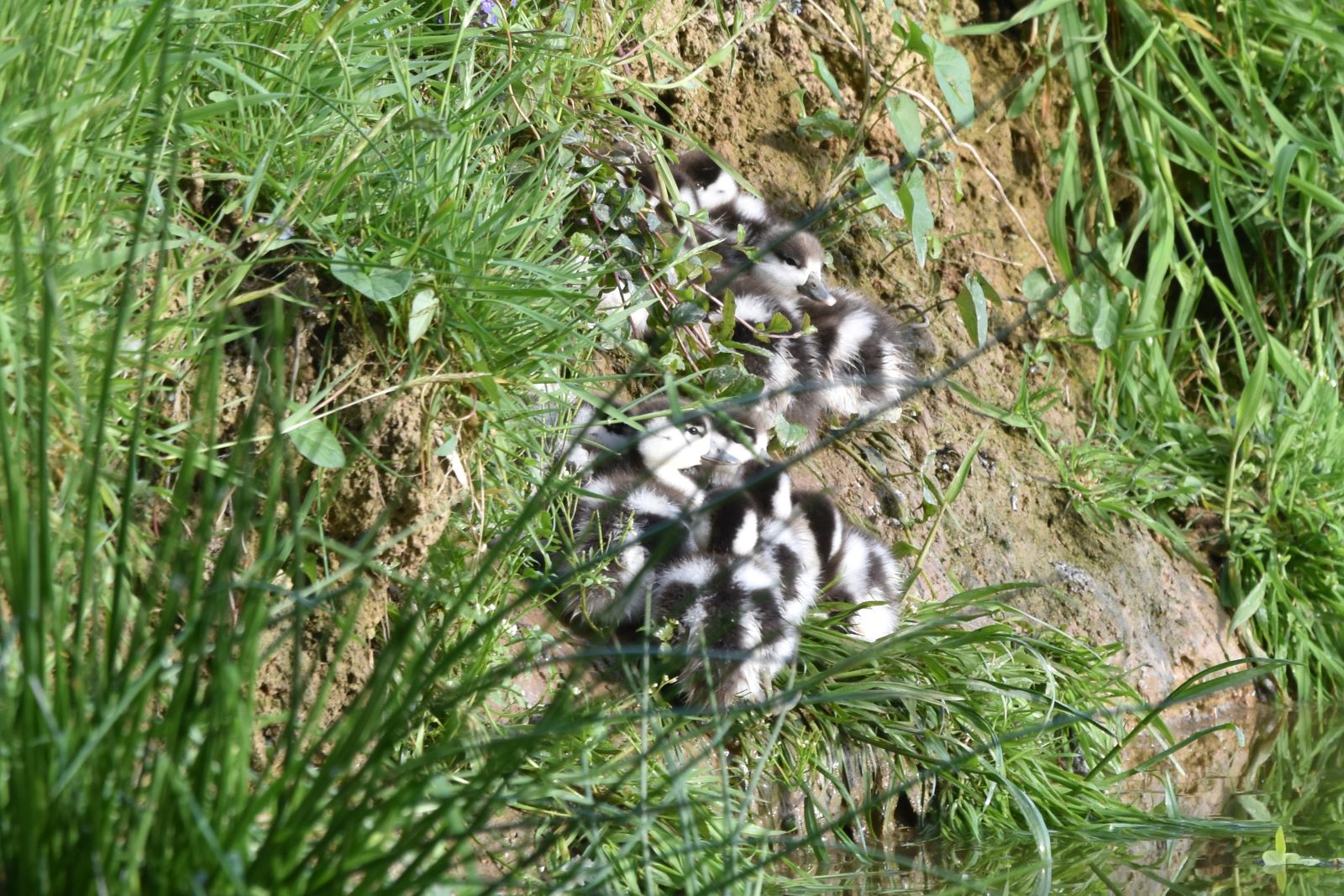 Quand ils sont pas dans l'eau ils sont bien caché dans l'herbe sous la surveillance des parents.