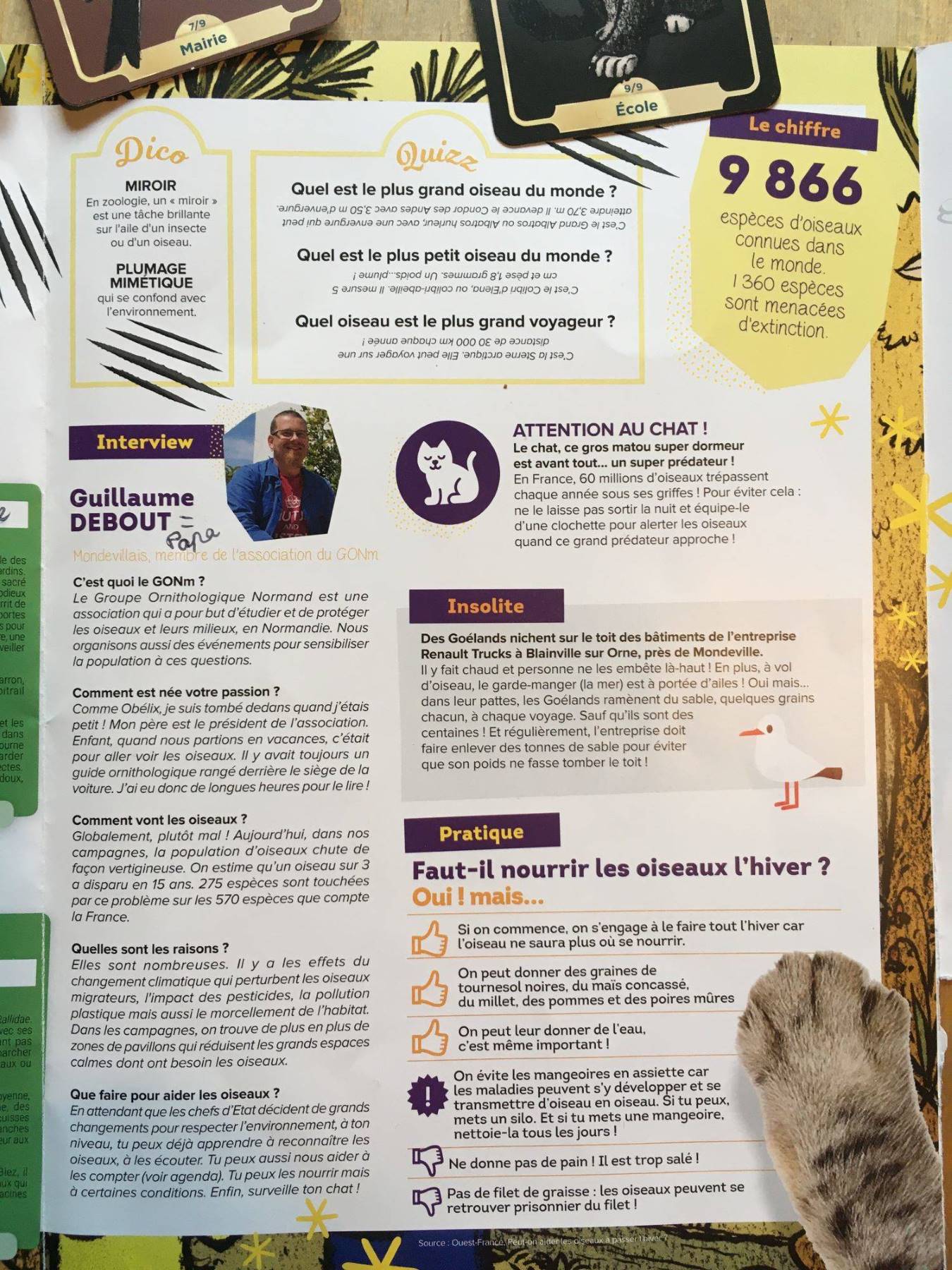 Un numéro spécial OISEAUX dans la revue municipale dédiée aux enfants de la ville de Mondeville (14120) : "Minots" !