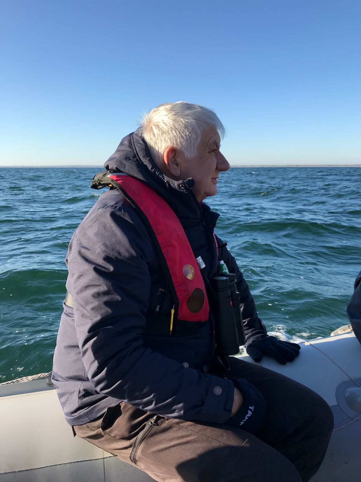 Les deux jours suivants, le vent et la houle nous ont contraint à laisser le Bec-Scie à la bouée. Aussi nos journées ont été consacrées à la prospection de la Grande Ile et de l’estran. Le samedi, les conditions de navigation étant idéales, et bien que contraints par le temps (la vedette qui devait nous ramener sur le continent partait à 15h) nous sommes à nouveau sortis en mer pour dénombrer les limicoles au reposoir de marée haute. Et à midi, ce qui devait arriver arriva, une panne moteur … qui nous a contraint à rejoindre l’île à l’aviron. Mais toute l’équipe a parfaitement su réagir et cette péripétie n’est restée … qu’une simple péripétie !!