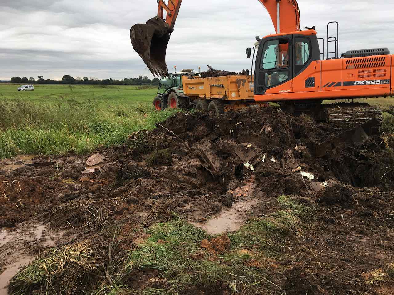 Gros travaux réalisés par l'entreprise Beaussire sur la RNR au niveau des Prés de Rotz suite à l'acquisition du gabion "Anne" en mai 2020.