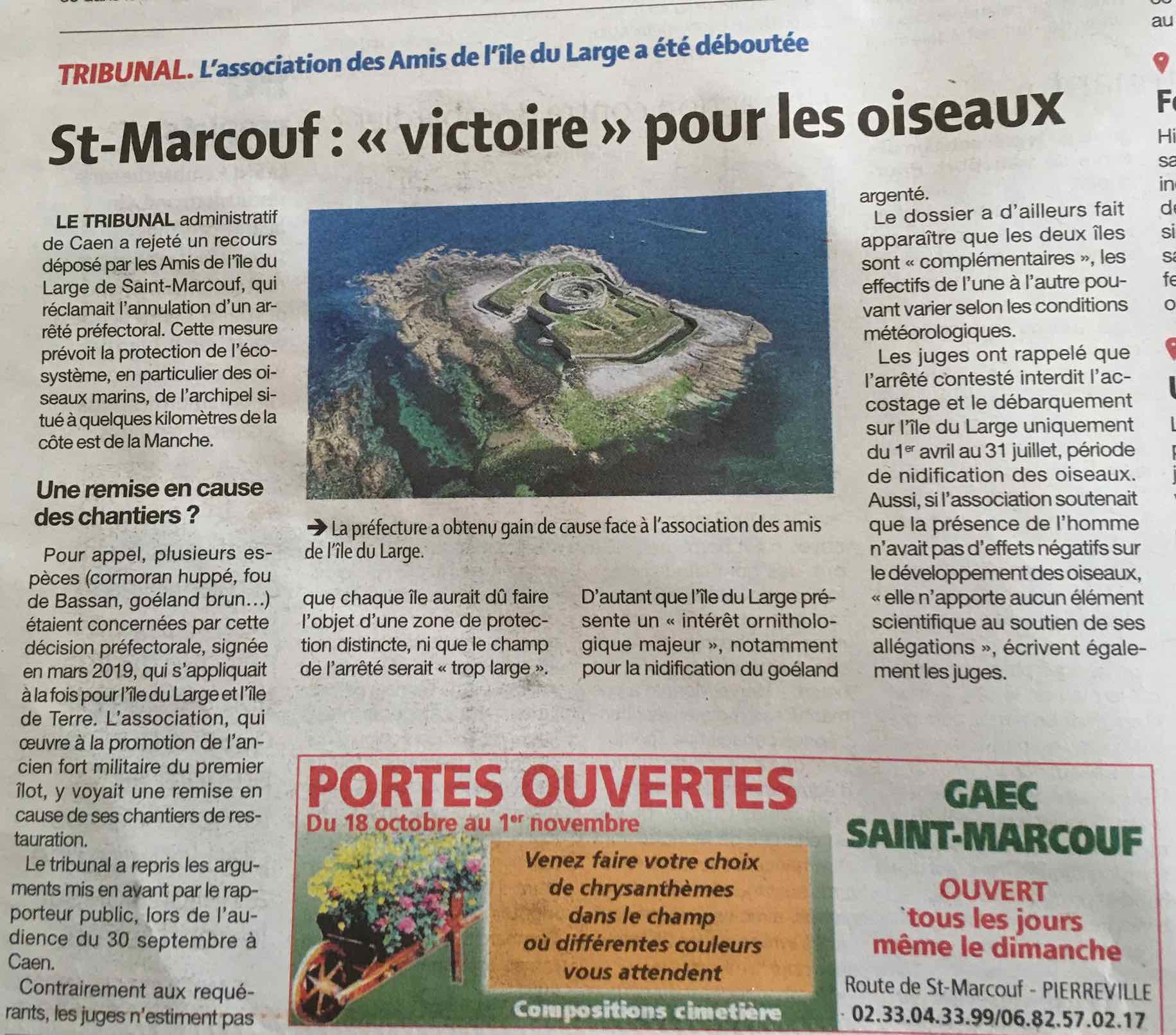 La tribunal administratif vient de rejeter le recours des "amis" de l"'île du Large à Saint-Marcouf : l'association est donc déboutée et le TA argumente en reprenant pour justifier l'arrêté préfectoral nos données (sur lesquelles il était fondé). C'est long, mais on avance