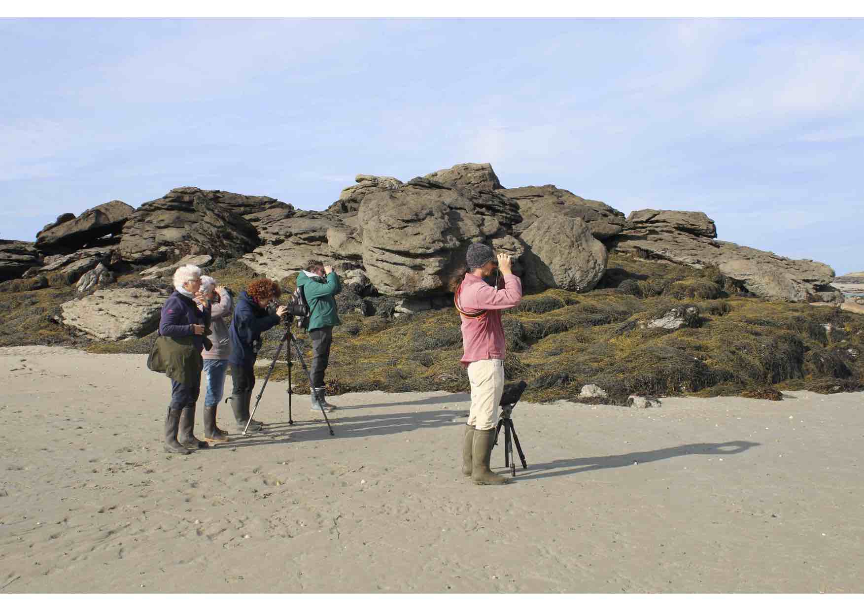 Sur la Grande Île, de nombreux migrateurs ont été observés. Parmi eux citons le célèbre pouillot à grand sourcil détecté par Luc ou le merle à plastron découvert par Martin. Mais aussi de très nombreux pinsons des arbres, pipits farlouse, hirondelles rustiques, alouettes des champs, alouette lulu … Au total 73 espèces d’oiseaux ont été contactées au cours des 4 jours de stage.