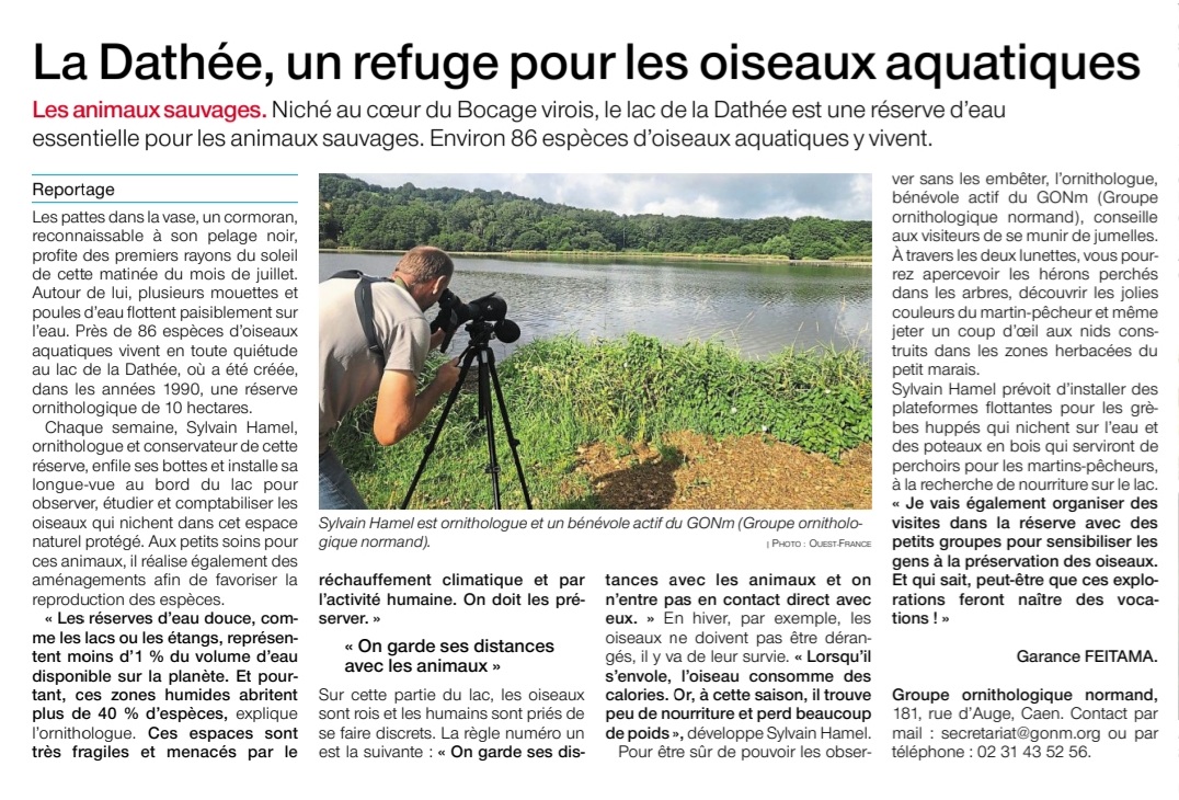 Sylvain Hamel est le conservateur de la réserve GONm de la Dathée, retenue d'eau alimentant Vire en eau potable. Il présente à Ouest-France les caractéristiques de cette réserve et aussi des éléments de gestion qui y sont appliqués.