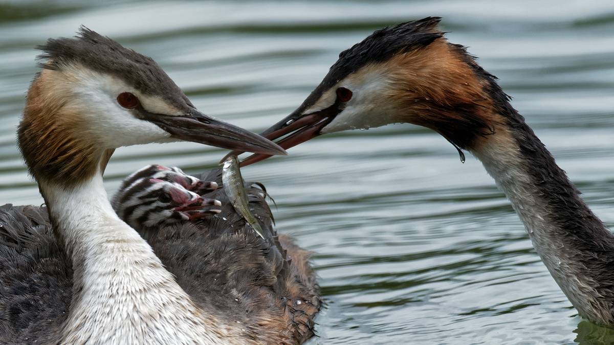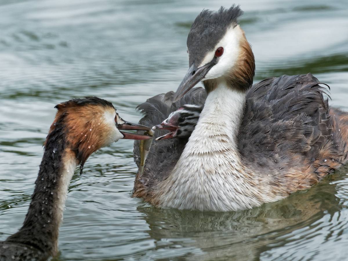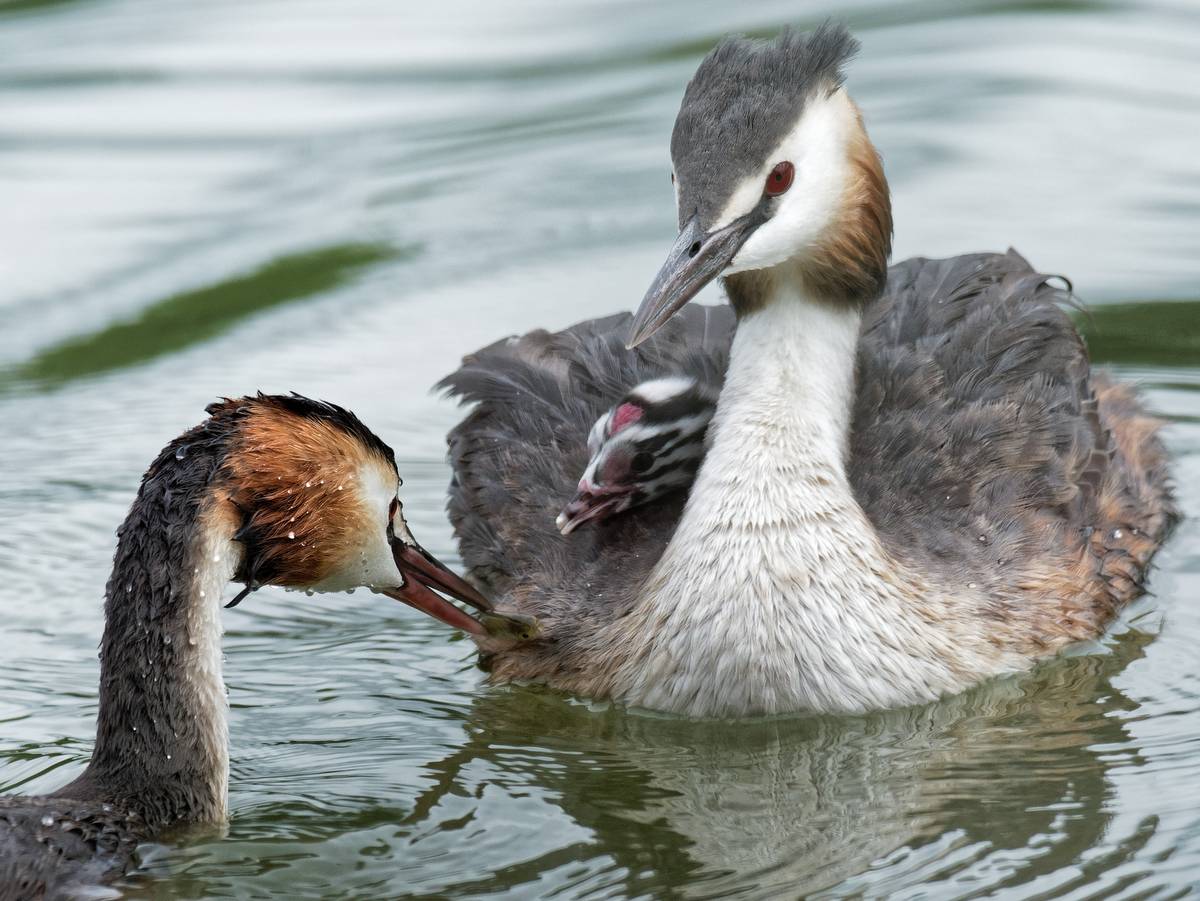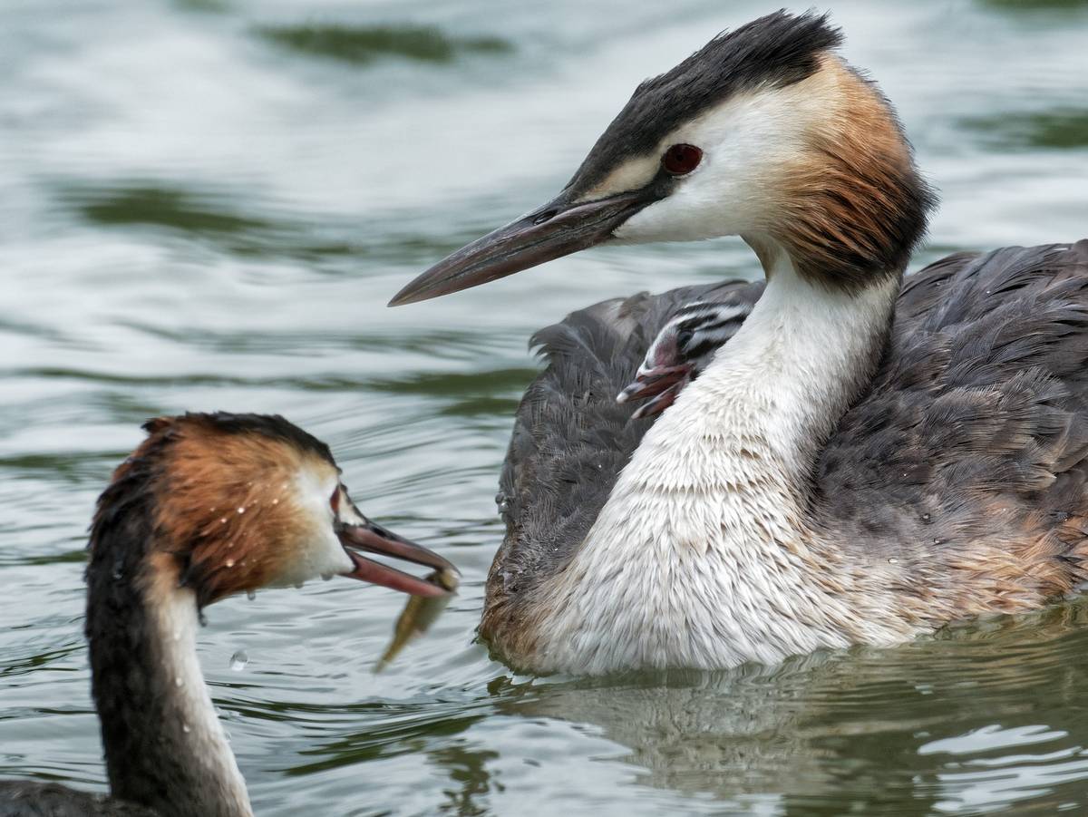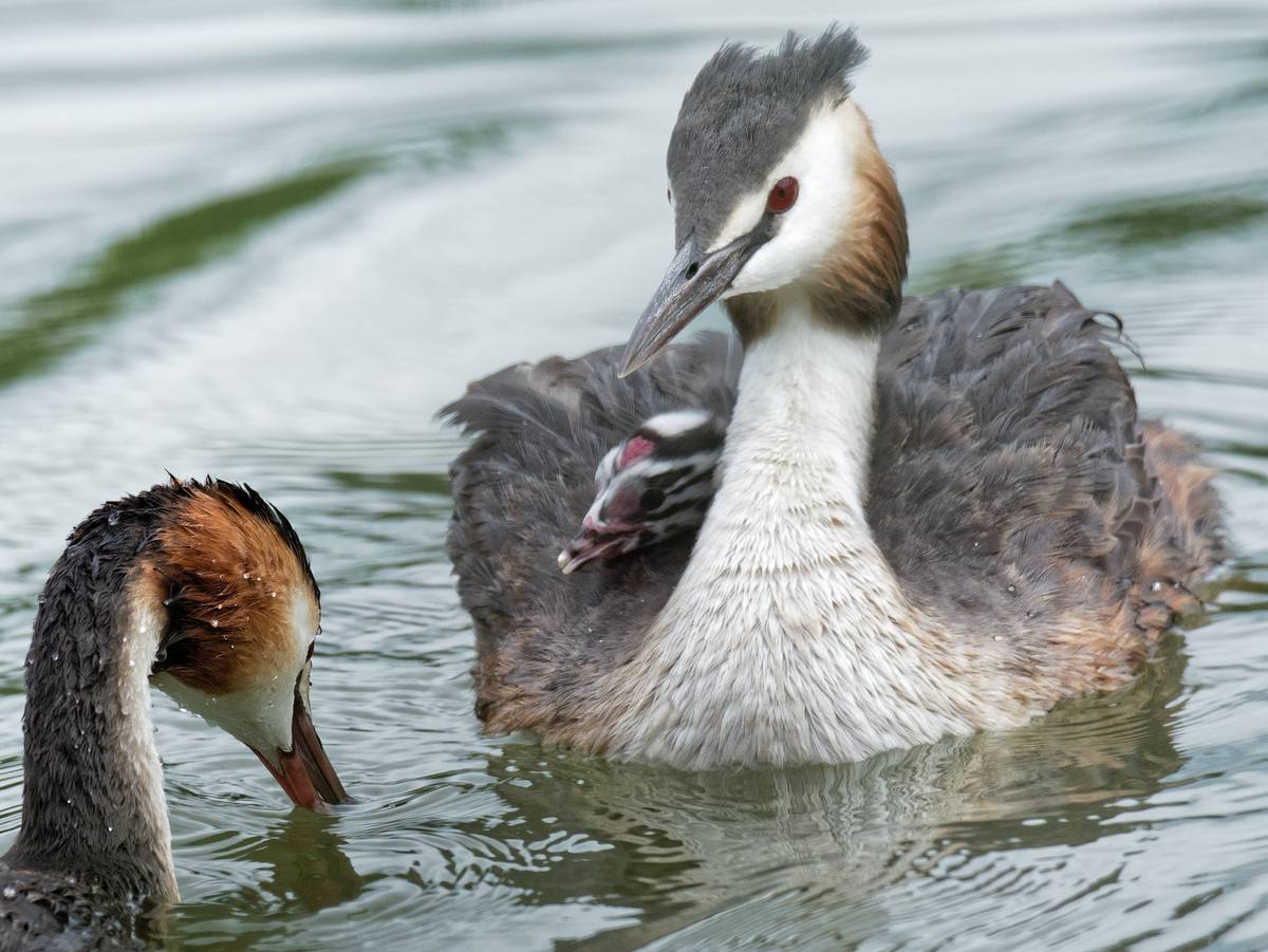 Le 18 toute la famille me fait une démonstration de nourissage des jeunes. Un adulte porte les jeunes sur son dos, l'autre pêche et arrive un poisson dans le bec. Il avance, présente le poisson à un petit, recule,trempe le poisson dans l'eau, revient etc... et finit par donner son poisson que les petits attrapent avec plus ou moins de réussite. Le tout a duré 15 secondes et le petit goinfre a englouti son poisson en moins de 4 secondes.