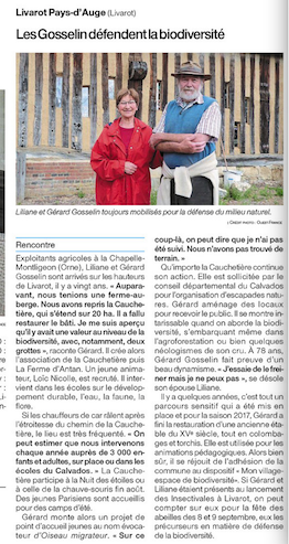 Bien que le texte ne le précise pas, la Cauchetière à Livarot est aussi un des refuges du réseau du GONm. Gérard Gosselin avait fait appel à Sophie Akermann pour mettre en place cette collaboration.