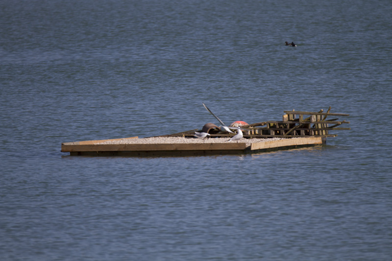 Les radeaux en place devenus vétustes et risquant de couler à tout instant, nous avons travaillé depuis deux ans à leur remplacement. Cet hiver, ce projet s’est concrétisé et, à son retour, nos belles « hirondelles de mer » vont pouvoir profiter de deux radeaux flambant neufs pour y élever leurs jeunes d’avril à septembre.