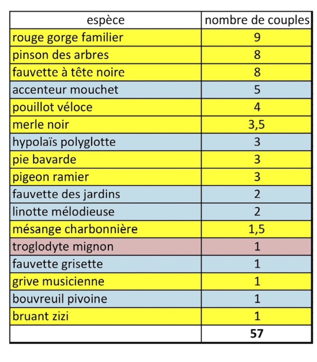 La commande a volontairement et bénévolement été élargie à un calendrier plus étendu sur l'année permettant de mieux connaitre la fréquentation d'un espace a priori peu favorable aux oiseaux. Le bien fondé de la démarche a été conforté à travers les résultats parfois surprenants. La bécasse, la bécassine des marais, la fauvette grisette, la linotte, le bouvreuil, etc. sont au rendez vous selon le calendrier propre à chaque espèce.