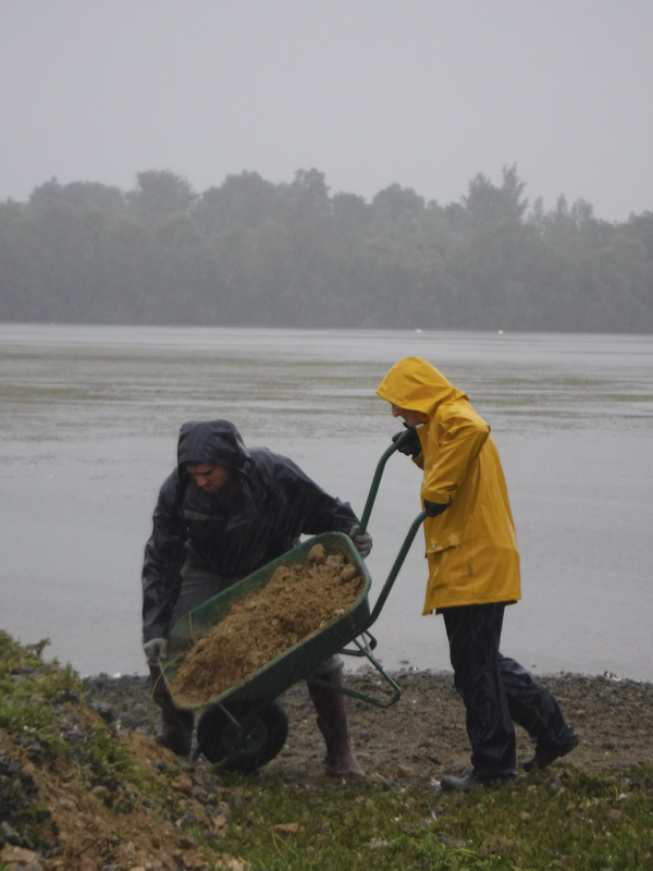 cette année le niveau d'eau étant très bas,cela va permettre de récupérer plus de pierres pour former un épi en bordure de l'ilot central pour protéger