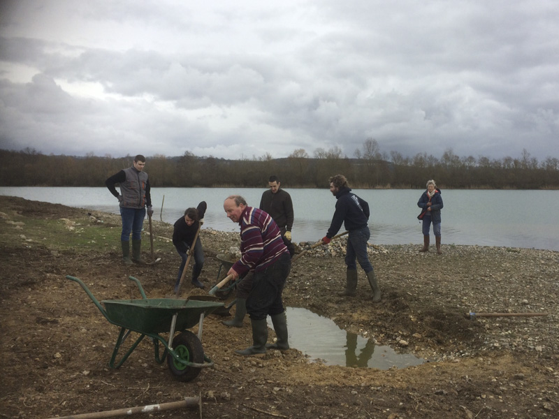 on va creuser une petite mare avec apport de terre végétale pour créer un milieu différent de mare avec vase qui suivra le niveau d'eau de la réserve
