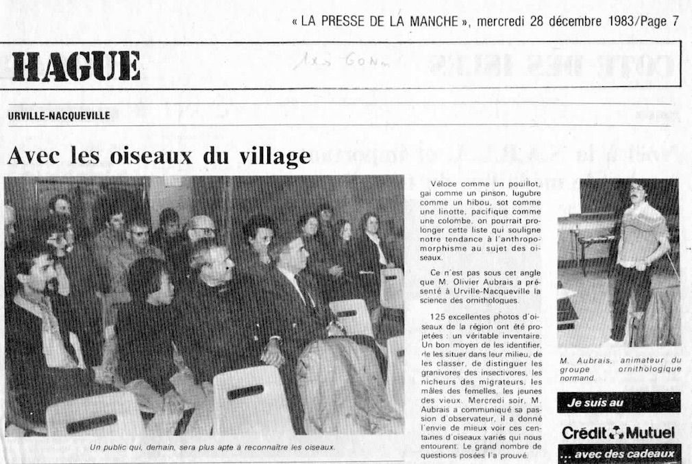 Les oiseaux dans la presse de la Hague : trois documents retrouvés par Olivier dans ses archives. Trois facettes de l'activité des ornithos du GONm