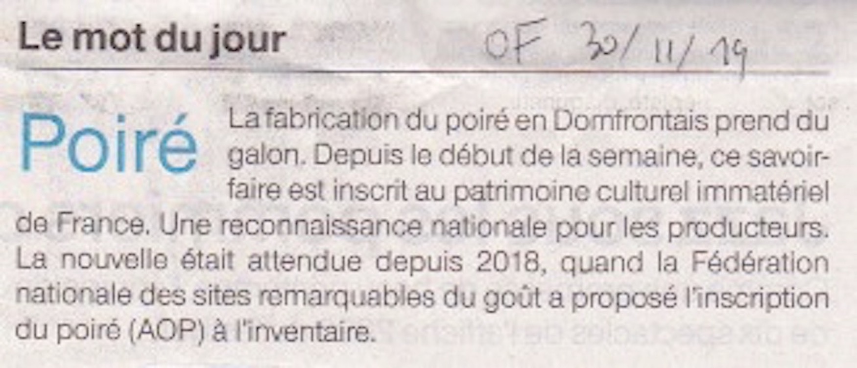 2019 11 30 - poiré Domfront - AOP - inscription au patrimoine culturel immatériel - OF