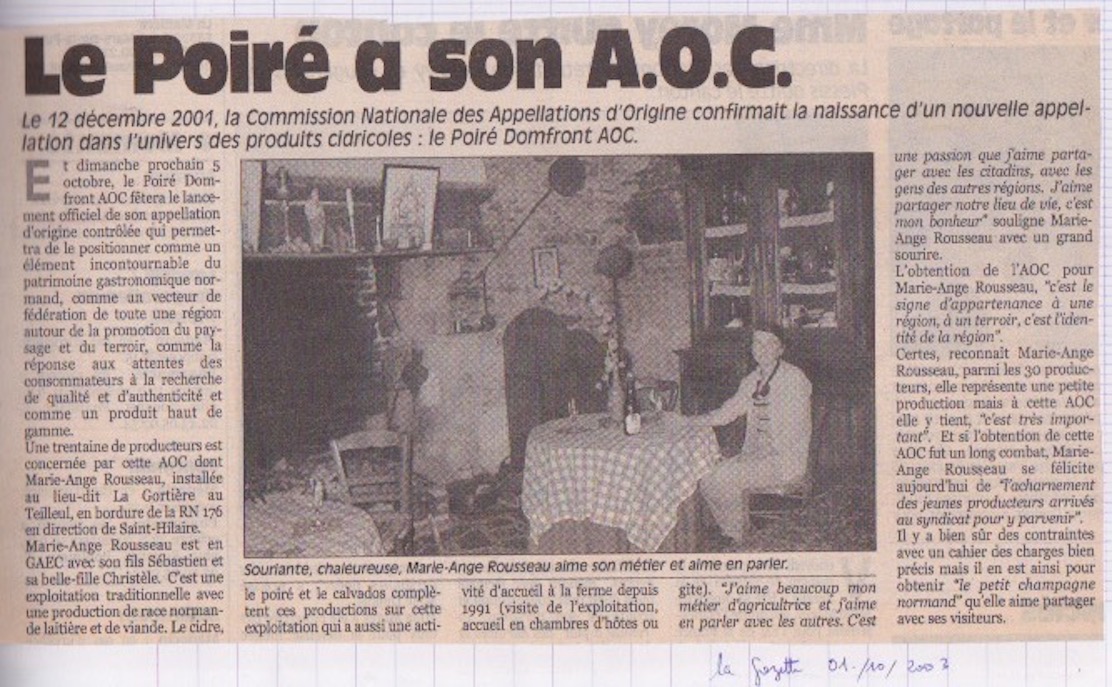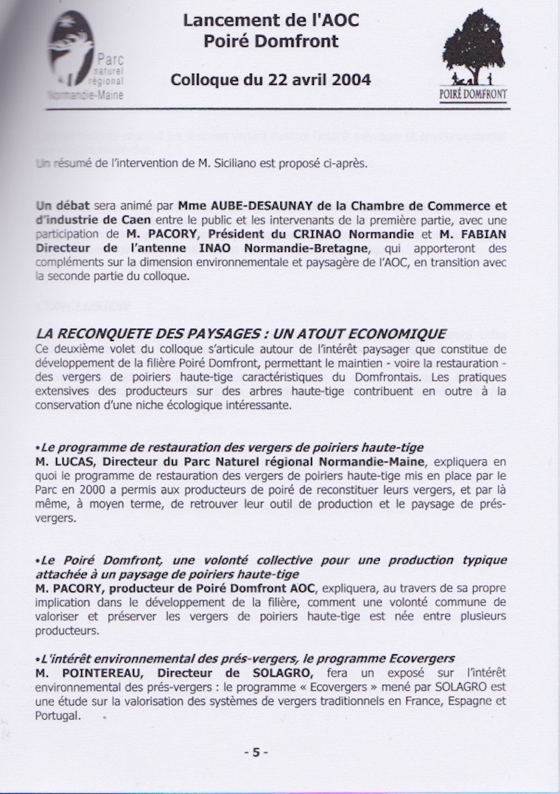 Contrairement à ce que l'on pourrait penser au premier abord, cette information a des racines dans l'histoire du GONm : derrière le "patrimoine culturel", il y a aussi un patrimoine naturel. 2003 10 01 - AOC - poiré - Domfrontais