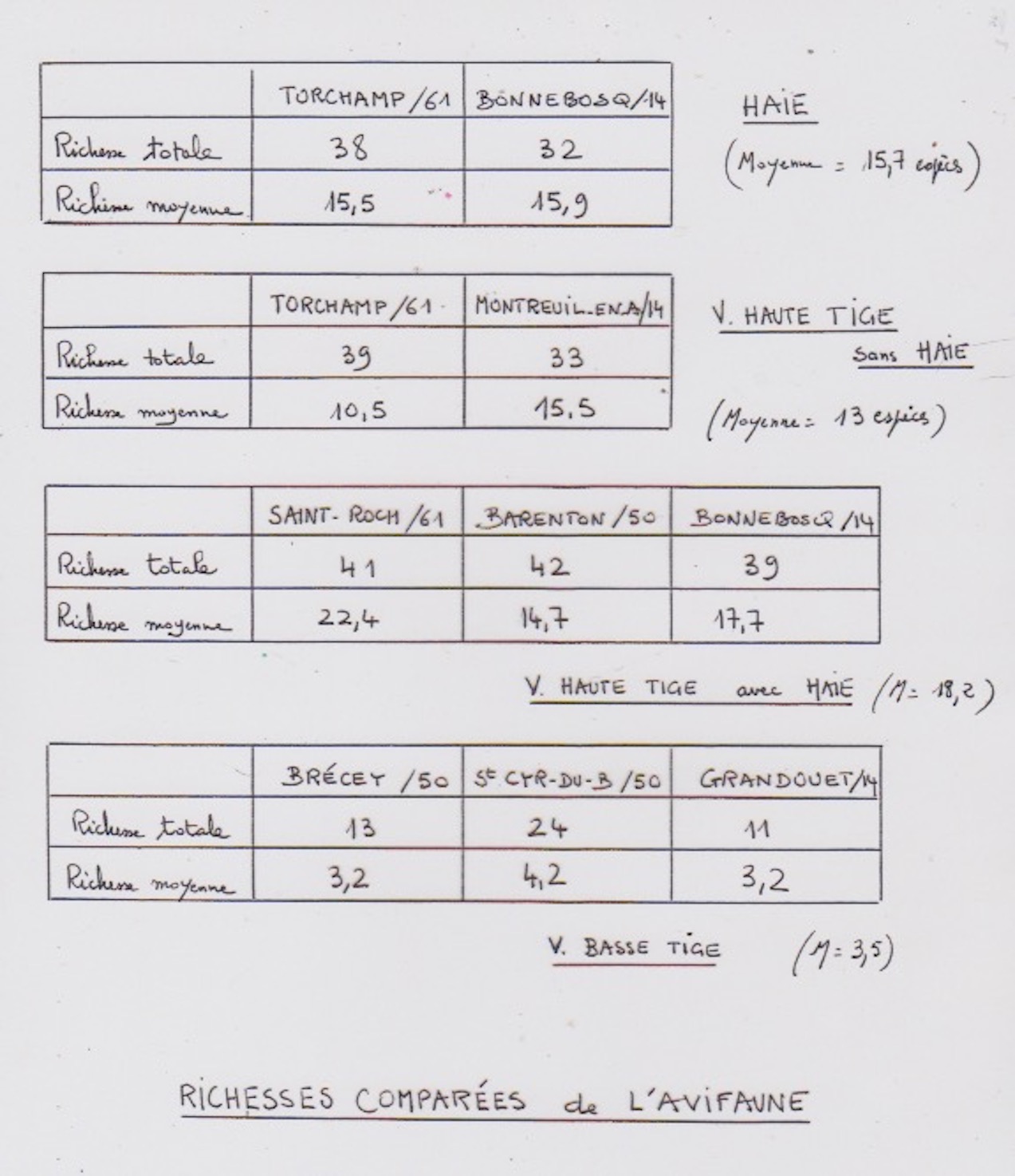 Le même protocole est utilisé simultanément par Charles Legeleux sur des vergers du Pays d'Auge, l'enquête sur les vergers du Domfrontais étant assurée par Stéphane Letessier et Jean Collette.