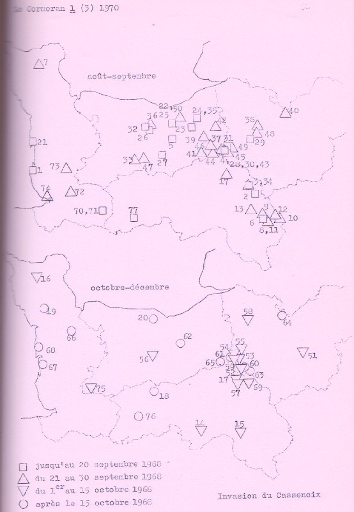 Le Cormoran, 1 : 62. évolution 1959-1969. Le Cormoran, 1 : 63; évolution 1959-1969.
