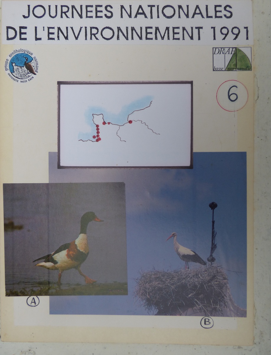 L'ouverture n'a plus tout à fait lieu le "14 juillet", mais pour les ornithos du secteur, le gabion reste un mode de chasse à combattre : chasse de nuit donc illégale, avec toute l'imprécision qui peut découler des difficultés d'identification, gênant le "gagnage" nocturne (les canards posés en mer le jour circulent vers les zones terrestres pour se nourrir). Bref, nous avons tenté une expérience pédagogique à Avranches, place de la mairie. La ville est un haut lieu de la chasse au gibier d'eau, le député maire de l'époque n'est pas neutre vis à vis de la question (et ce sera démontré un peu plus tard quand il donnera la préférence de gestion des prés de l'hôpital aux chasseurs - archives à venir! -) Nous ne nous sommes pas fait que des amis ce jour-là.