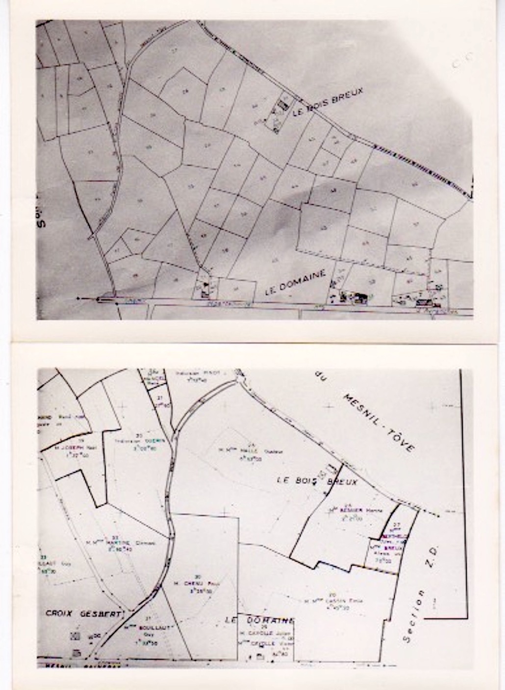Les photos des plans exposés en mairie de Juvigny (mai 1976) montrent le niveau de bouleversement du maillage. Actuellement, le quadrat de 20 ha ne représente plus qu'une seule parcelle (de culture, maïs le plus souvent). Seules subsistent les deux petites parcelles bâties.