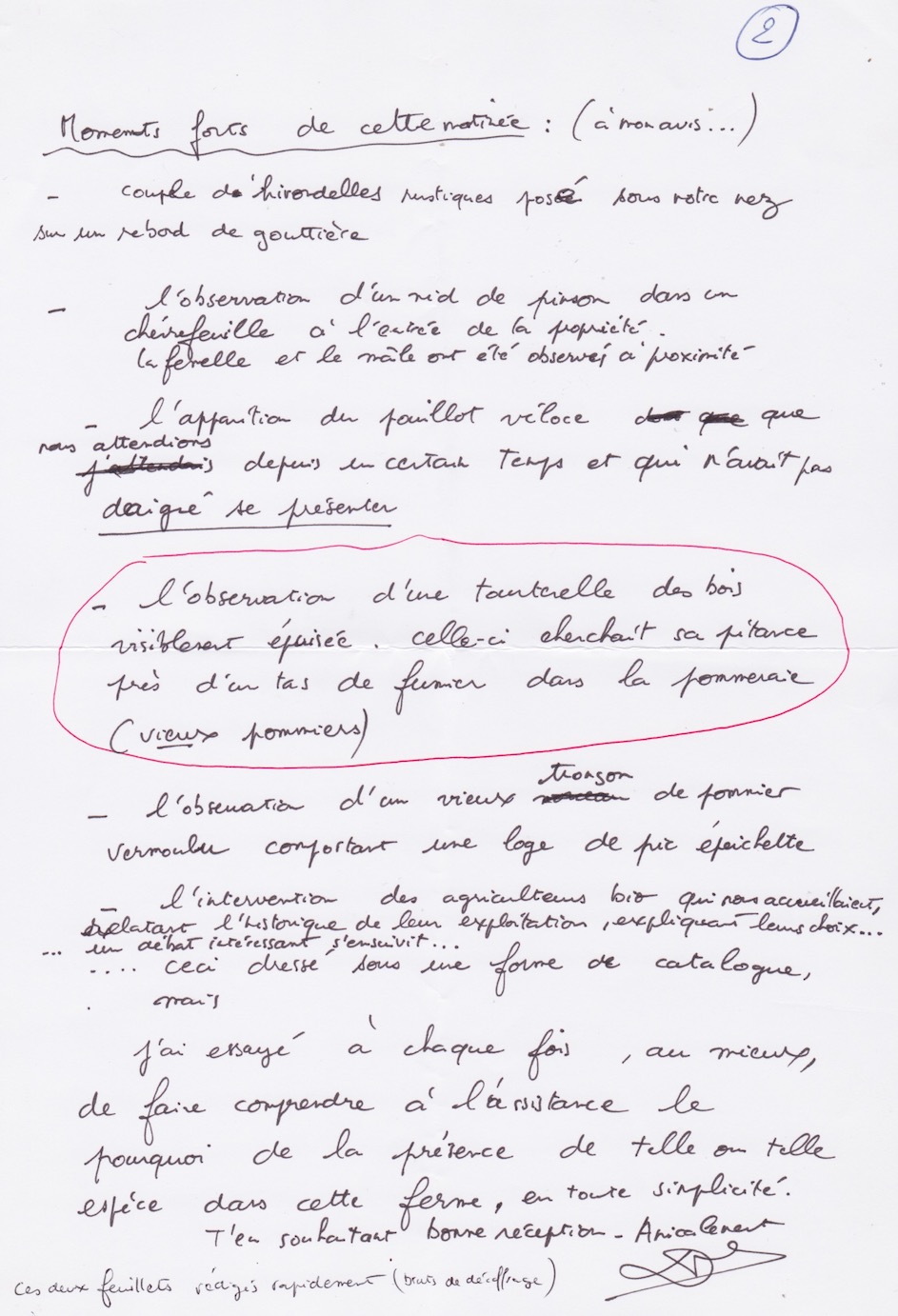 1973 06 00 - remembrement - Barenton/50 - opposants- La Gazette de la Manche Parmi les arguments des opposants, certaines remarques se sont avérées exactes a posteriori. Par exemple le faible décalage entre une limite existante et le nouveau tracé a été observé à plusieurs reprises (et ce, aussi sur d'autres communes remembrées). Le tract du député Bizet, tel que rapporté par les opposants, souligne que "ce serait une erreur de toucher aux parcelles de plus d'un hectare." Si ce fut dit, sur le terrain, on fut loin du compte! Et depuis, l'évolution du parcellaire s'est chargée de contredire dans les grandes largeurs cette affirmation... Le suivi du quadrat de 20 ha de mars à juin 1973, dans son état initial, fut un vrai plaisir (malgré l'horaire "d'avant l'heure d'été"!) ... Des nicheurs (sur ou autour du quadrat) en bocage du Sud Manche ont maintenant un goût de regret! Pic cendré, chouette chevêche, sittelle, bruants zizi et jaune, alouette lulu, mésange nonnette, pipit des arbres, rougequeue à front blanc, tourterelle des bois, hulotte nicheuse en têtard de châtaignier sur talus... la fin du suivi 3 ans plus tard fut moins glorieuse.