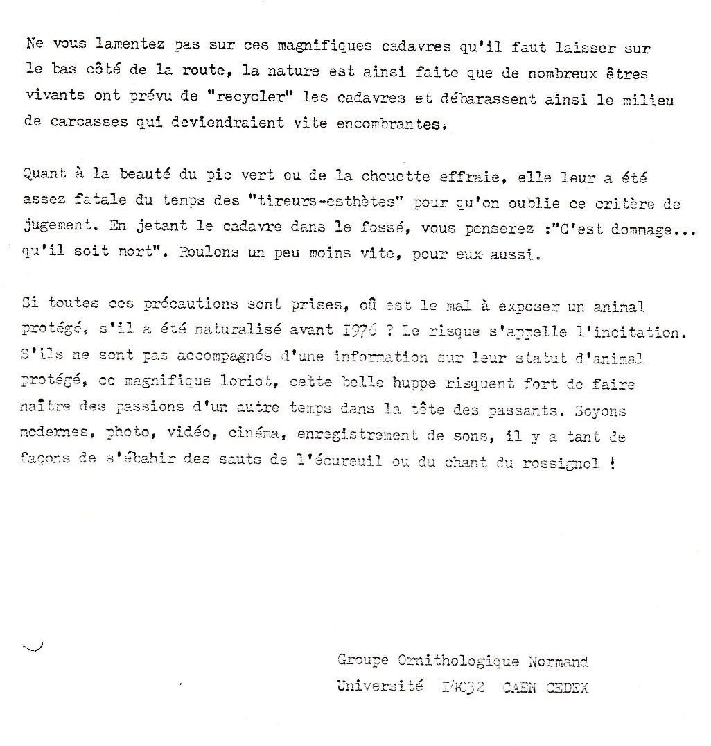 1990 11 16 - animaux naturalisés - vitrines - démarches protection -