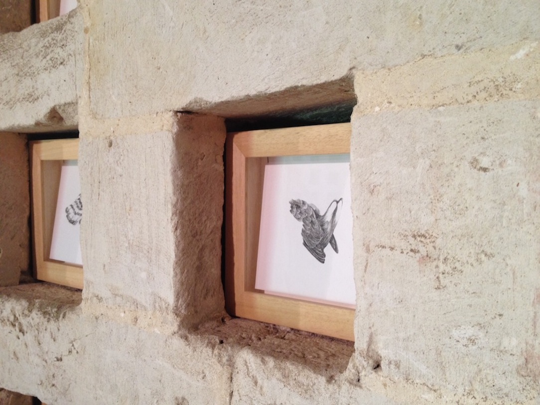 Le haras de Préaux est entré dans le réseau des refuges en mai 2014, le propriétaire Monsieur Lucas ayant choisi d'adhérer. Notre collègue Sophie Akermann en charge des comptages est plus concernée par le réseau des haies que par le pigeonnier du 16e siècle. Mais d'autres visions de l'oiseau ont occupé les niches du pigeonnier en juin dernier. L'artiste Héloïse Guyard a exposé des oeuvres s'appuyant sur la plume et l'oiseau. Exposition brève d'oeuvres parfois éphémères... Il faudra aller à l'île d'Yeu en août pour admirer ces plumes d'un autre genre.