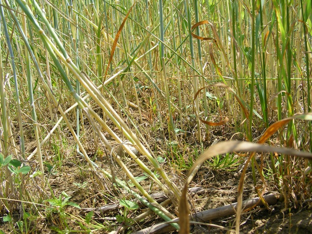 Actuellement, le seigle mesure 1,70m, le blé ancien 1,40m, le blé moderne 0,80. L'escourgeon et ses épis à 6 rangs de graines est spectaculaire. Une parcelle destinée à l'alimentation du bétail porte un mélange de pois fourrager, de pois protéagineux, d'orge, de triticale et d'avoine!