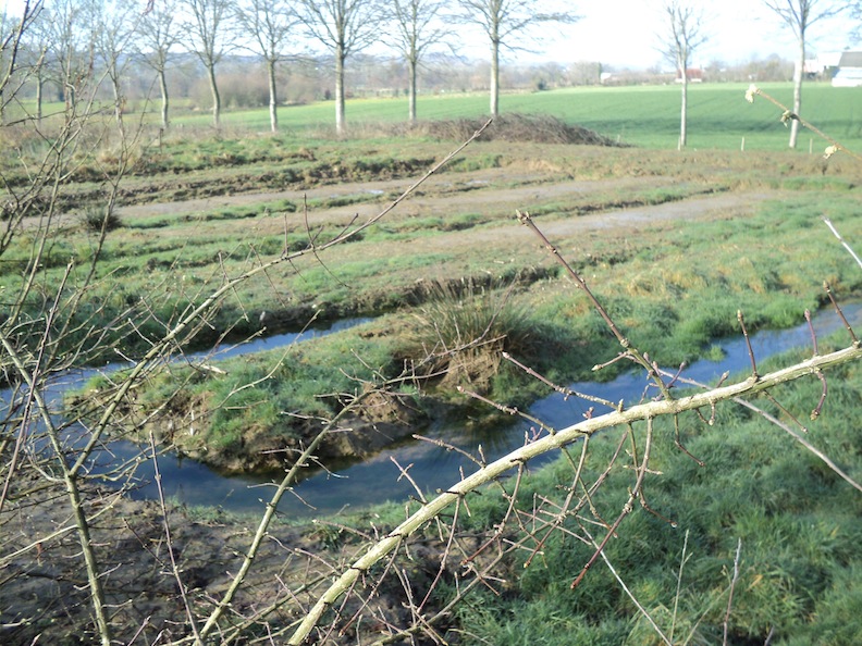 Le second ruisseau coule peinard dans un vallon en déprise sur le refuge de l'Arséantise à la Haye-Pesnel. Sous les aulnes, peu de lumière; cependant, des touffes d'iris se sont implantées. A leur échelle, elles prouvent le rôle majeur de la végétation rivulaire dans le maintien du profil du cours d'eau : les rhizomes puissants ont bloqué le sol qui a ainsi résisté à l'érosion. Entre les aulnes et les iris, le ruisseau file doux!
