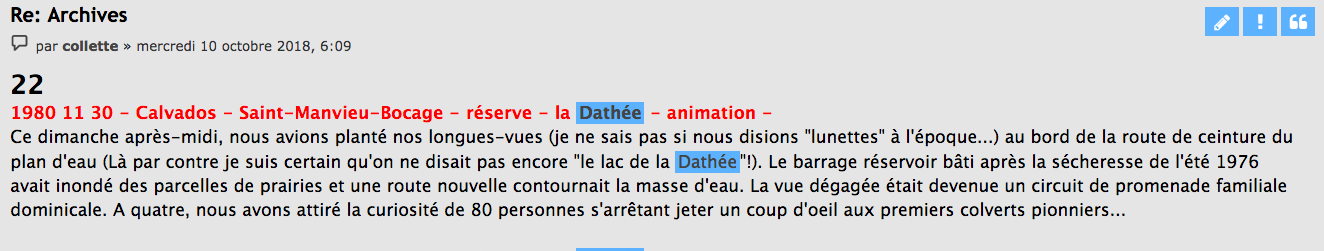 En reprenant (à destination des listes de Faune Normandie) les feuilles des relevés du quadrat qui avait anticipé les travaux destructeurs à venir, quelques documents dormaient dans les chemises. En particulier un article rapportant les actions des opposants et un tract résumant les arguments de ces opposants.