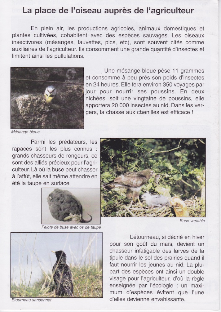 2004 04 18 - oiseaux de la ferme - animations concertées - plaquette - Des financements furent cherchés du côté des PNR et des Chambres d'agriculture (dont 3 sur 5 répondirent positivement) Rappeler que les oiseaux peuvent être des auxiliaires... La pose de nichoirs à mésanges s'est généralisée dans les vergers basses tiges en particulier. Défaut de jeunesse : trop de texte, mais il y a tant à dire pour défendre les mares, les haies, les bosquets, les chaumes... 2004 04 28 - animations concertées- courrier de synthèse