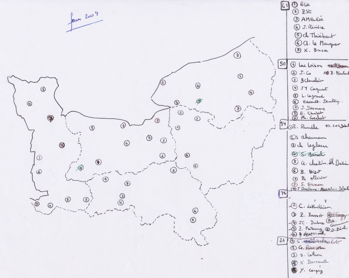 - les 4 cartes postérieures aux travaux donnent un total de 134 individus (36, 21, 37; 40)