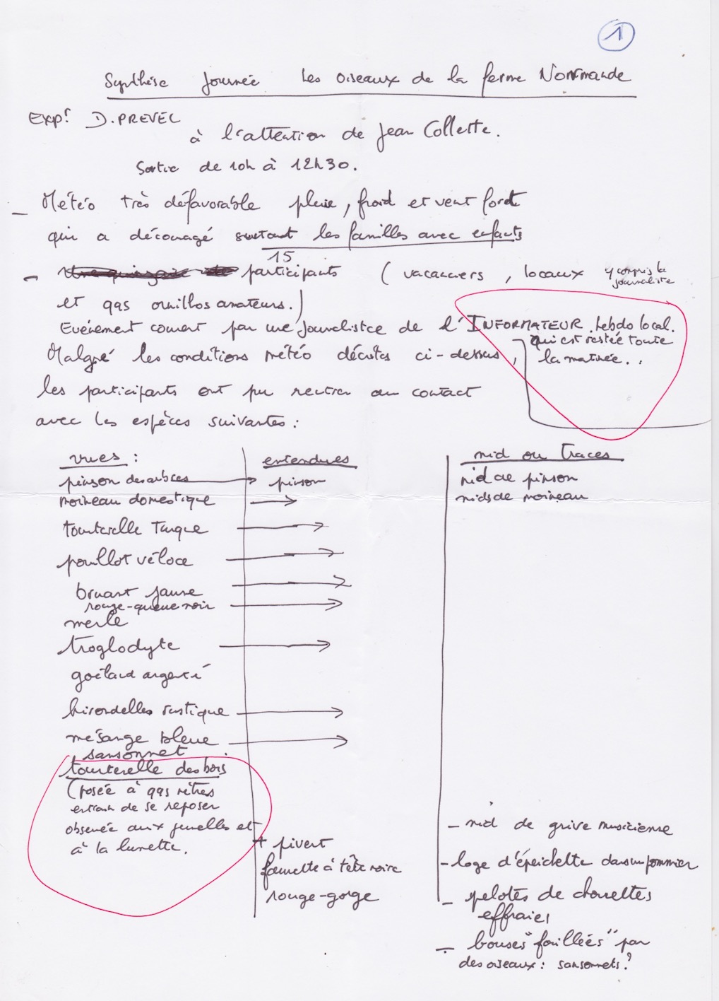 Elle est complétée par un entrefilet noté à l'époque dans le cahier d'observations. Pour mémoire, le contexte local à l'époque est délicat. La société de pêche est puissante (le président, Monsieur Savey, est vice président au conseil municipal virois à côté du maire Olivier Stirn) d'où notre choix de rendre l'ornithologie plus visible avec l'appui de la presse locale.