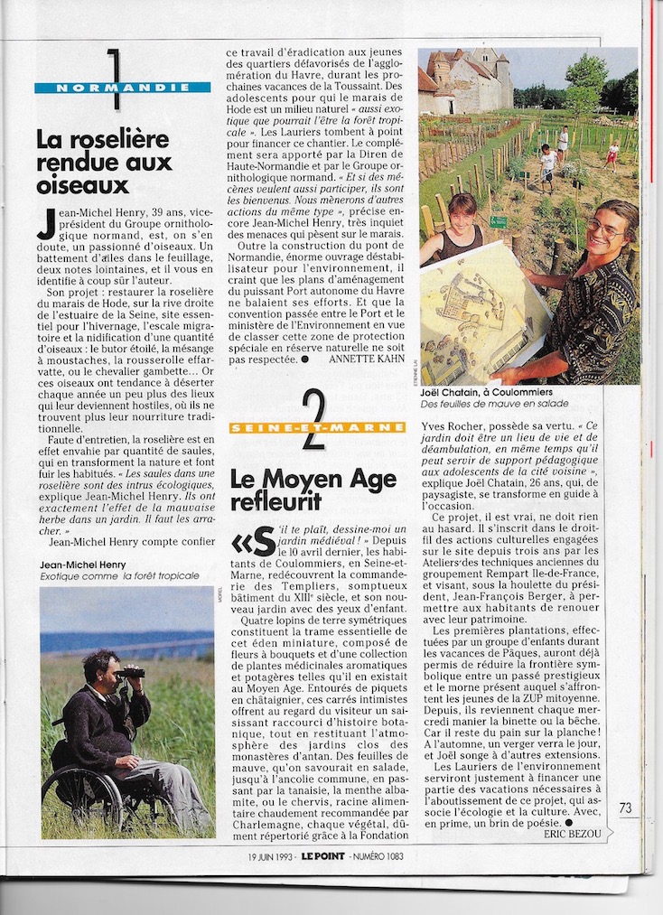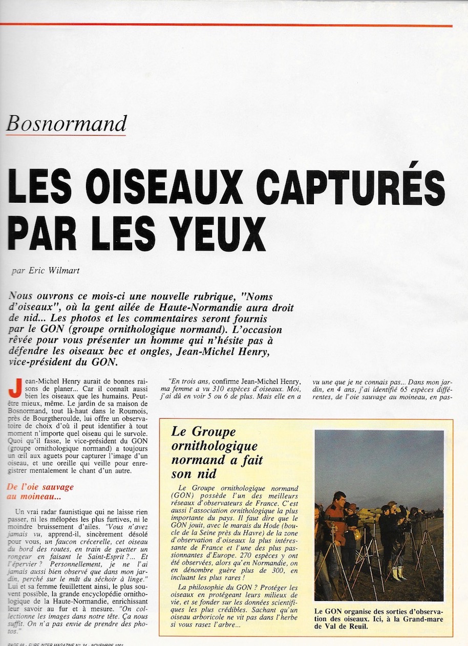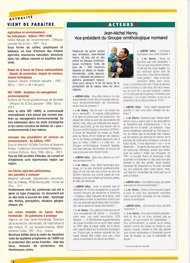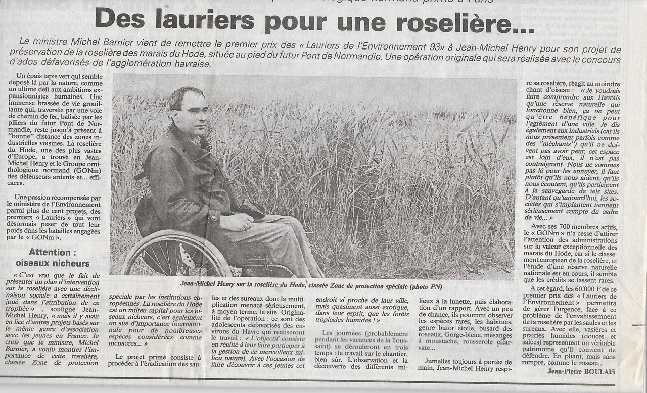 1991 11 00 - GONm-J.M. HENRY- Eure Inter Magazine n°34- p 68- 1993 06 17 - J.M. Henry - Hode -roselière - Lauriers de l'Environnement -Paris-Normandie - couverture - 1993 06 19 - Lauriers de l'Environnement - Hode - roselière - J.M. Henry - Le Point n°1083 - pages 71-73- 1998 01 00 - Jean-Michel Henry - GONm - ARHEN n°5