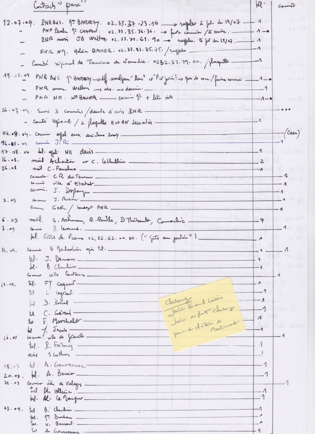 Avec l'expérience acquise au cours des deux premières éditions, il devient évident que l'étalement de l'organisation facilite le travail de l'organisateur... Les échanges avec les PNR (16), avec les villes (16), des propriétaires de parcs privés, les Gites de France, les bénévoles potentiels (102), l'imprimeur occupent les 6 premiers mois : il faut à la fois monter un réseau de bénévoles et financer l'édition de la plaquette, d'où les contacts avec les PNR et les villes pressenties.