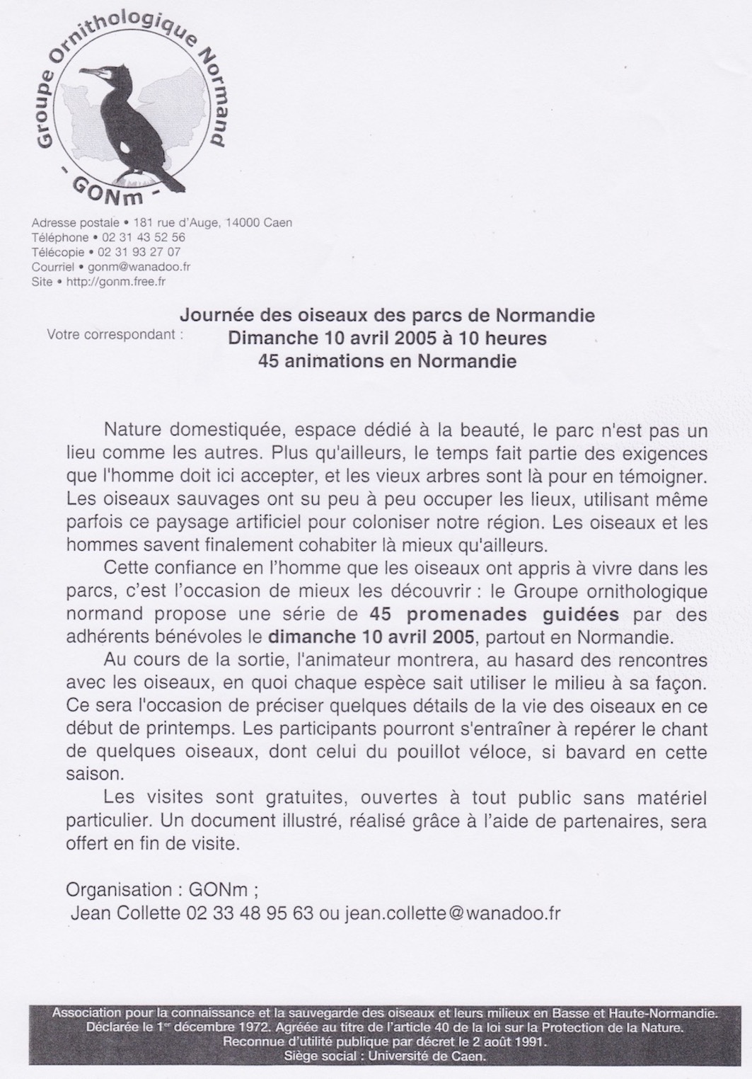 200- Animations concertées de printemps (3): Journée des oiseaux des parcs : 10 mai 2005