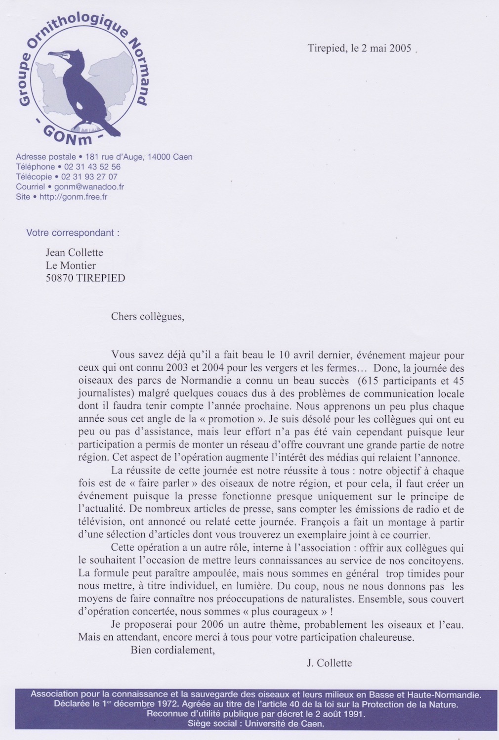 2005 05 02 - courrier - remerciements -