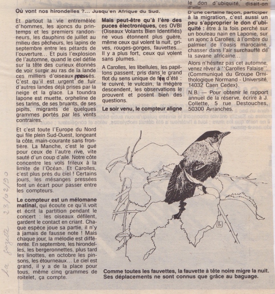 1990 02 23- Carolles - réserve - migration - rapport annuel - la Gazette de la Manche -