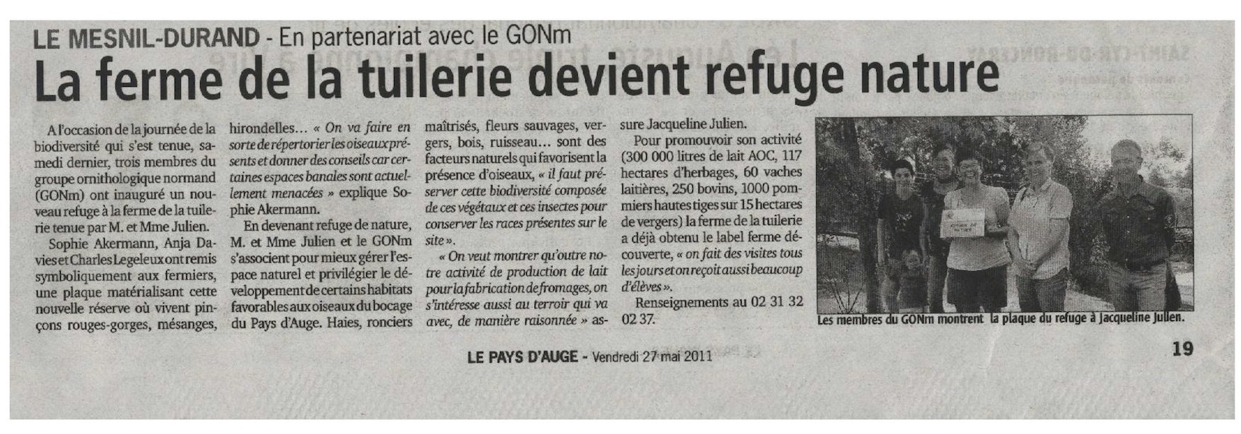 Dix refuges variés sont "inaugurés" en même temps. 2011 06 10- Refuges- journée internationale de la biodiversité - bilan- La réussite se mesure en nombre d'articles, mais aussi en nombre d'adhérents participant aux rencontres, une quarantaine au total.