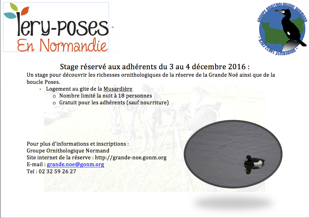 Réservation obligatoire auprès du garde : grande.noe@gonm.org ou 02 32 59 16 27