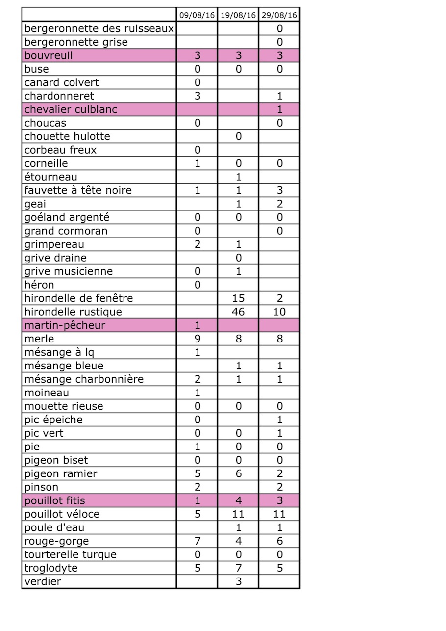 La donnée la plus marquante du relevé est l'absence des hirondelles : le phénomène du flot post dortoir local est terminé. A remarquer, aucun contact avec le pinson des arbres qui reste de toute façon anecdotique à cette époque de l'année ici.