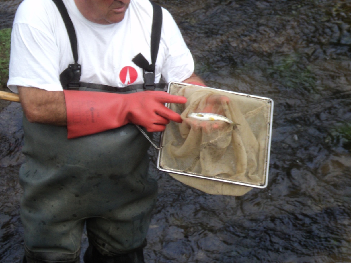 Lundi 12 septembre, les techniciens de la Fédération départementale des pêcheurs du Calvados sont passés à Tirepied faire un comptage des anguilles : la pêche électrique est sans danger pour les poissons relâchés ensuite. Entre deux radiers sous la rive de la réserve, sur 30 points de capture (protocole officiel), 220 anguilles ont été capturées! Beaucoup sont petites, remontant le cours d'eau; d'autres blanches ou jaunes, "descendent", se préparant à traverser l'océan Atlantique pour aller pondre en face de la Floride. Un voyage de 5800 km!