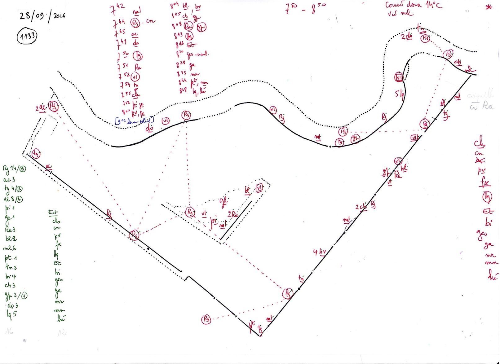 Relevé d'une heure (7h30-8h30) Ciel couvert, vent soutenu de NW puis plus calme. Bruine au début, mais il en faudra plus pour remonter le niveau de la Sée!