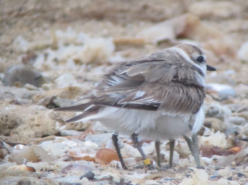 Le week-end pascal fut pour moi l''occasion de voir mes premiers gravelots à collier interrompu 2015 à Ouistreham. 10 individus présents dont deux mâles bagués qui avaient niché sur cette même plage l'année dernière. le 153 jaune est le mâle dont le nid fut repéré par Robin en mai dernier et qui fut bien protégé contre l'envahissement de la plage pour accueillir les 19 chefs d'états ! (voir plus loin dans ce sujet). Il était encore là ce soir avec une femelle baguée 27j, une inconnue pour moi. (si j'en crois le CV de la 28j (même couvée, ou même série de baguage james ??) elle serait née à Merville en 2010).