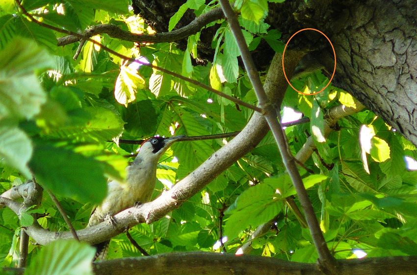 Pas besoin d'aller bien loin pour faire des découvertes. Il suffit parfois de lever la tête. Maryse a découvert ce nid de pic vert dans son jardin, dans un marronnier. Le jeune est ici près de s'envoler.