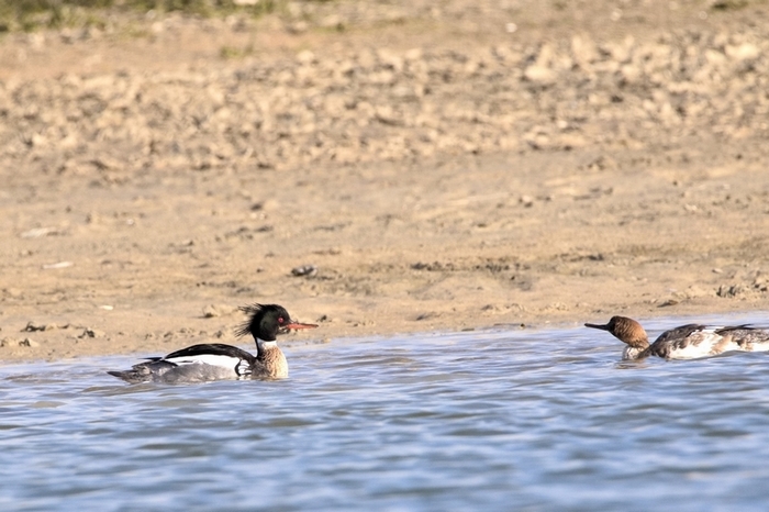 A Goury, Tadornes côté mares, et couple de harle huppé qui décolle tout de suite côté mer