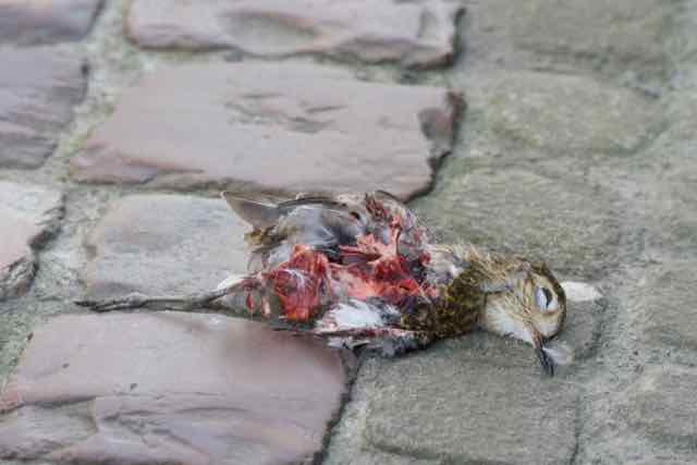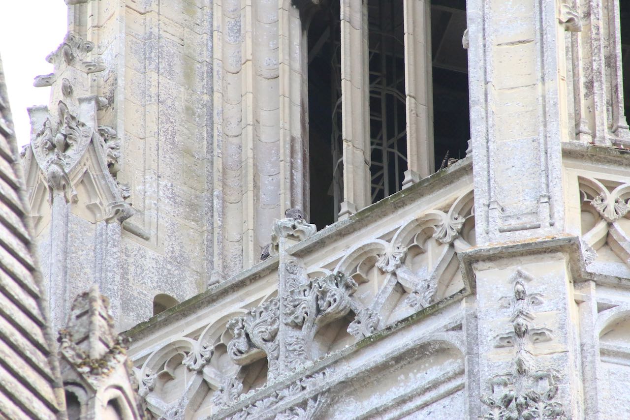 Restes de repas du faucon pèlerin, trouvés aujourd'hui au pied de la cathédrale de Bayeux :