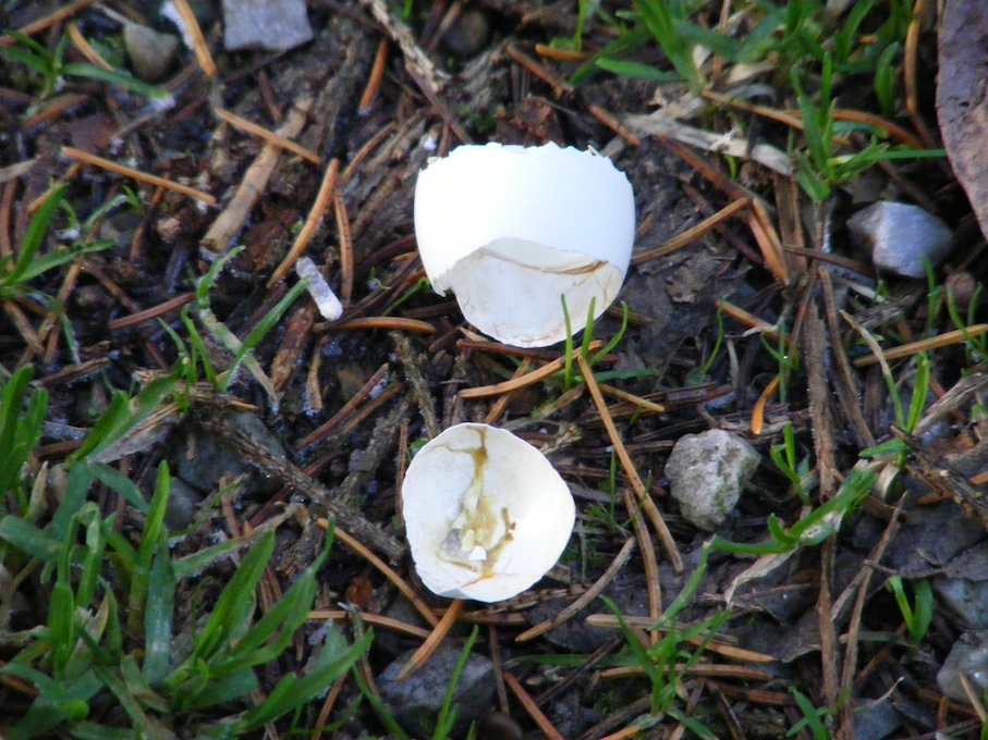 Hier 31 décembre, un oeuf fraichement éclos de tourterelle turque à Tirepied. Dur dur, le matin -8°C au Montier!