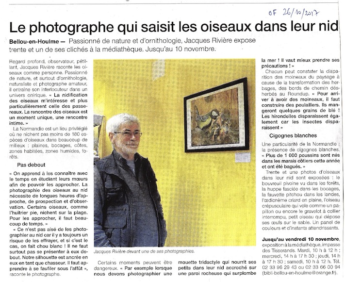 c'est gentil , mais l'article n'est pas très bien construit au niveau de l'ornithologie, et c'est de ma faute. De nature plutôt "taiseuse", je me suis trouvé surpris quand je fus face à la petite dame , correspondante locale du journal' arrivée sans prévenir. Elle a pourtant passé du temps avec moi, prenant de nombreuses notes, trop peut être puisqu'elle s'est mélangée les pinceaux avec les cigognes et l'oedicnème et son vol de papillon