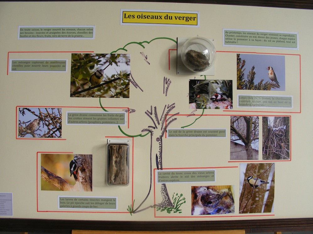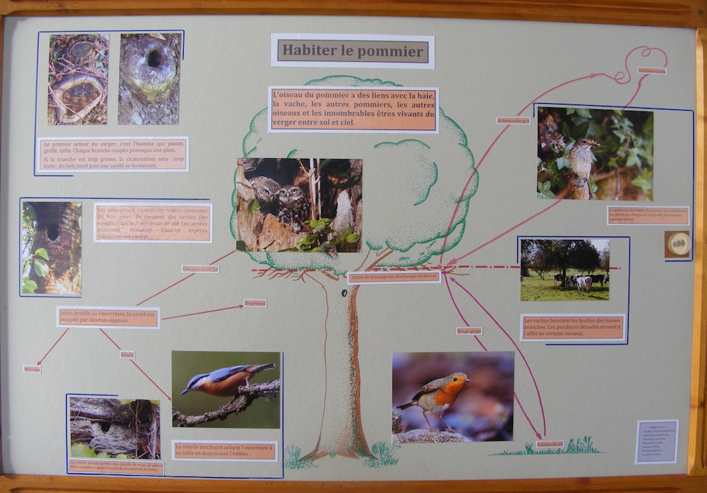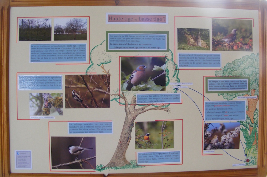 Une fois encore, j'ai fait appel aux dons de clichés pour monter trois panneaux sur les oiseaux du verger. Trop de mots rebute le lecteur, la photo est capitale pour capter l'attention. Neuf collègues m'ont prêté des photos, leurs noms apparaissant sur chaque panneau : Pascal Bernardin, Pierre Champeau, William Duvernoy, Carl Ghestin, Daniel Hélouin, Franck Letellier, Benoît Machard (†), Mélisse Moncel, et Jacques Rivière. Merci à tous pour votre aide!