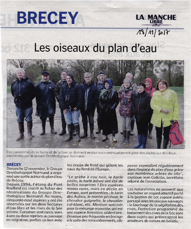 Le Pont-Roulland à Brécey est situé dans la vallée de la Sée. Un plan d'eau d'agrément y a été aménagé depuis plusieurs années dédié surtout à la promenade : il accueille notablement des oiseaux liés aux cours d'eau et aux plans d'eau. Bien suivi par le GONm, il faisait l'objet d'une animation le 12 novembre dernier. Vous saurez tout en lisant ces articles très informés et complets. La source étant la même, c'est l'occasion de jouer au jeu des différences entre ces 3 articles.