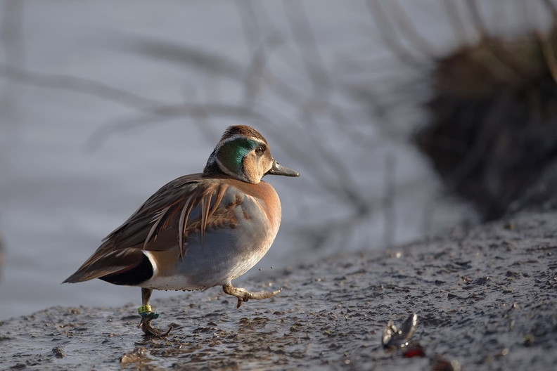 La sarcelle élégante est largement détenue en captivité, celle-ci ne déroge pas à la règle, les bagues utilisées sont typiques d'un élevage. C'est donc un oiseau échappé ou plus logiquement introduit volontairement sur le site.
