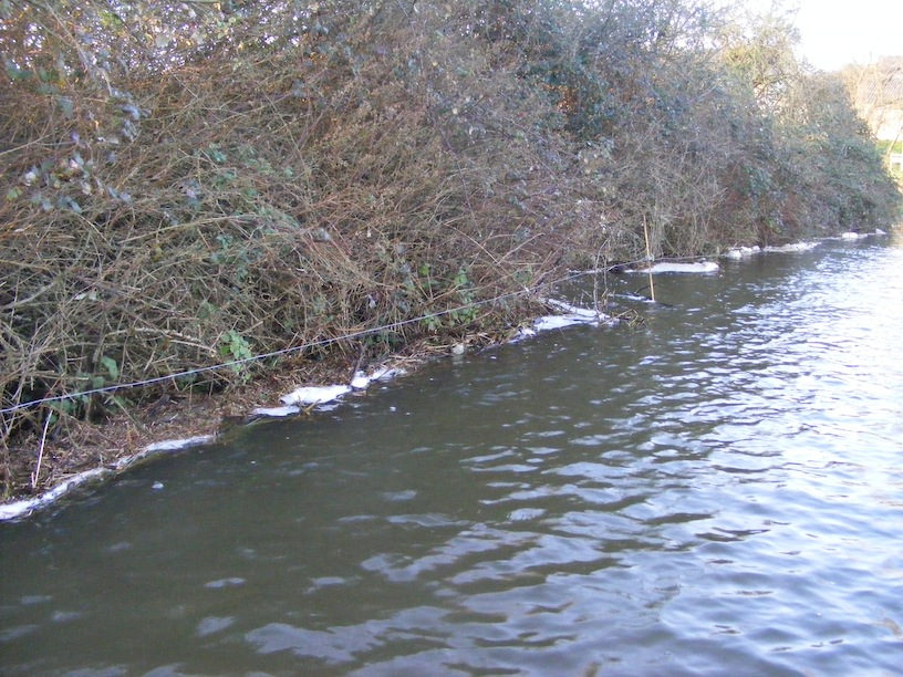 Une autre observation tirée de l'expérience du suivi de la réserve de Tirepied : en traversant le réseau des branches de saules couchées sur le cours d'eau, le flux est freiné et "écrémé", un radeau d'écume et de débris se formant en surface. Le phénomène est aussi noté dans les remous en bordure de rive là où la configuration créée un effet de tourbillon.