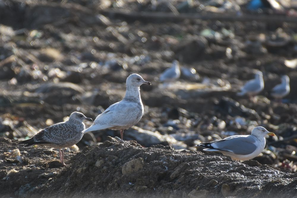 La photo sur le toit du centre de compostage en compagnie de goélands argentés de tous âges présentée dans le message suivant permet les comparaisons de taille et silhouette.